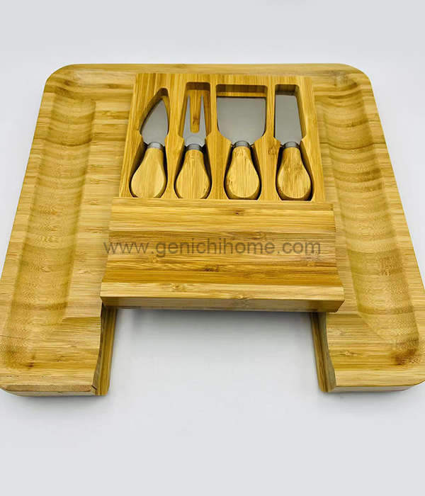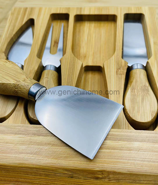 Forestil dig ubesværet med at skære gennem dine yndlingsost med vores osteknive i rustfrit stål, der spreder dem med vores chiske træostspredere og serverer dem med stil ved hjælp af vores slanke ostegafler - alle bekvemt gemt væk i Cheeseboards indbyggede skuffe. Med dette sæt vil du have alt hvad du har brug for lige ved hånden for at skabe en uforglemmelig ostesmagningsoplevelse for dig selv og dine gæster. Vi kan problemfrit aftrække dit logo på emballagen og skabe en personlig touch.
